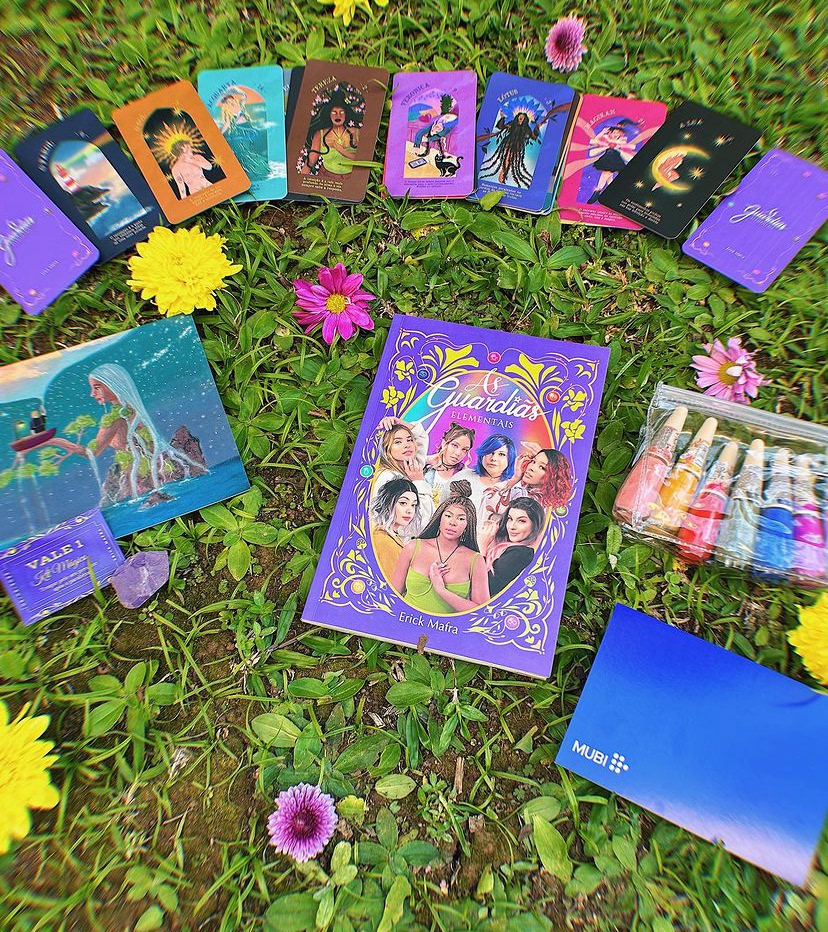 Erick Mafra é escritor e, como uma boa alma criativa, tinha uma visão bem específica de como queria essas cartas, por isso digo que elas foram feitas a quatro mãos. As Guardiãs Elementais é seu terceiro livro e a história é mágica e encantadora, cheia de mulheres fortes - ele fazia questão de transmitir isso. Foram muitos briefings, referências específicas e descrições detalhadas de como elas deveriam ser e fiz o máximo para que ficassem exatamente como ele imaginou! Foi legal porque foi um desafio diferente criar pensando na visão de outra pessoa, e não a partir das minhas próprias ideias. O resultado é esse deck lindo e que conversa bastante com o universo que ele criou com seus livros, do jeitinho que era pra ser.